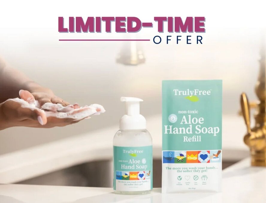 4. Stock your home with Truly Free Home Aloe Hand Soap, a non-toxic, moisturizing hand soap formula.