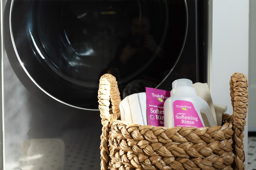 Plant-Based Fabric Softening Rinse: If you prefer a dedicated product over DIY vinegar, look for a plant-based softening rinse that uses naturally derived ingredients instead of harsh chemicals. Truly Free Home Softening Rinse uses plant-derived softeners that condition the water itself, so you don’t risk coating fibers or reducing absorbency. It's fragrance-free, dye-free, and safe for towels, workout clothes, and even cloth diapers—all the items that conventional fabric softener ruins.