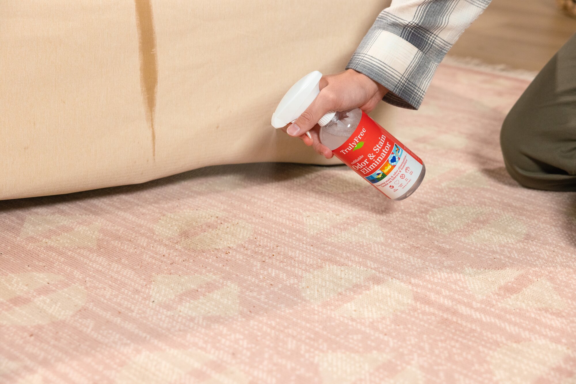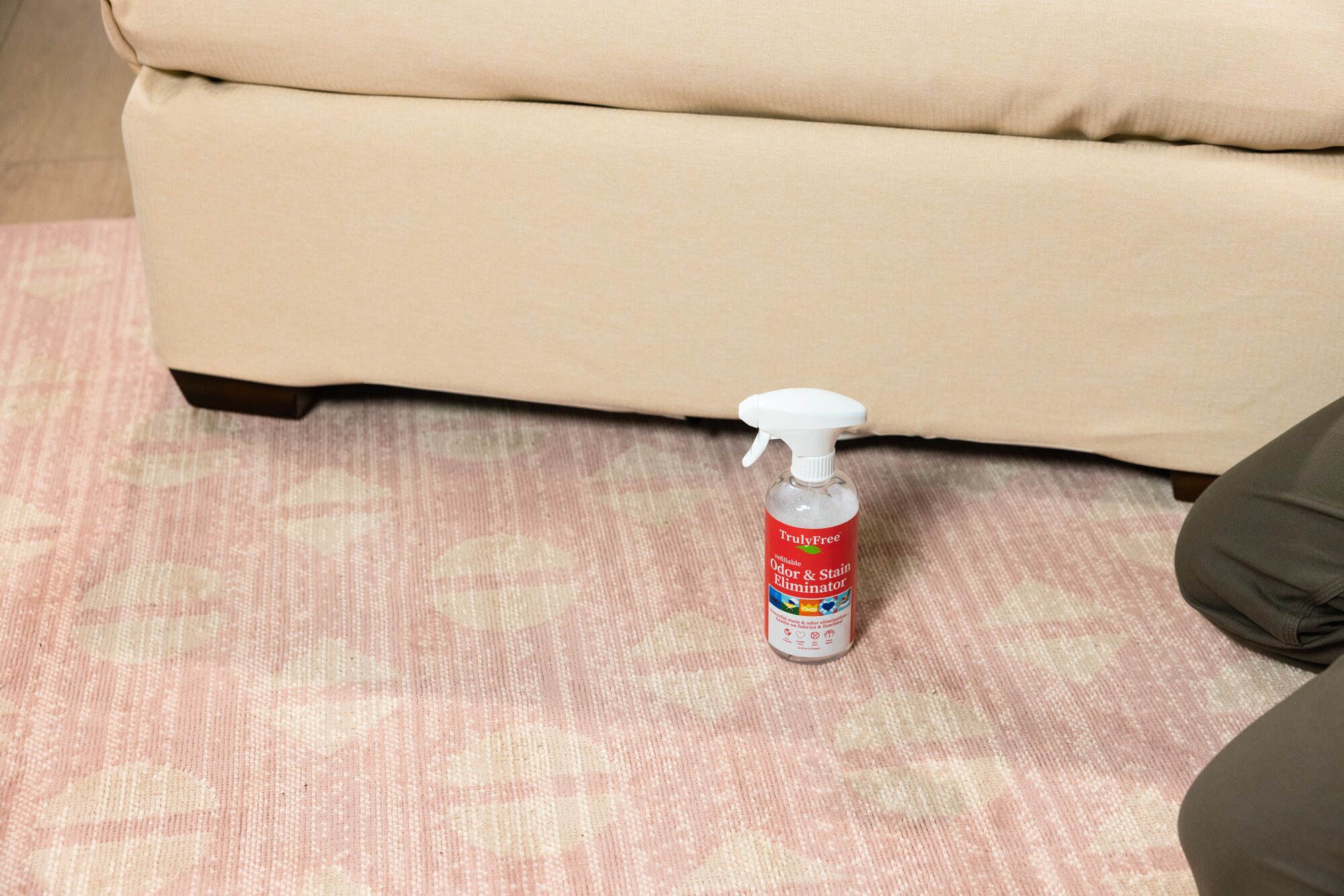 2. Spray the Affected Area - Spray the Odor & Stain Eliminator generously over the beer-stained area until fully saturated.