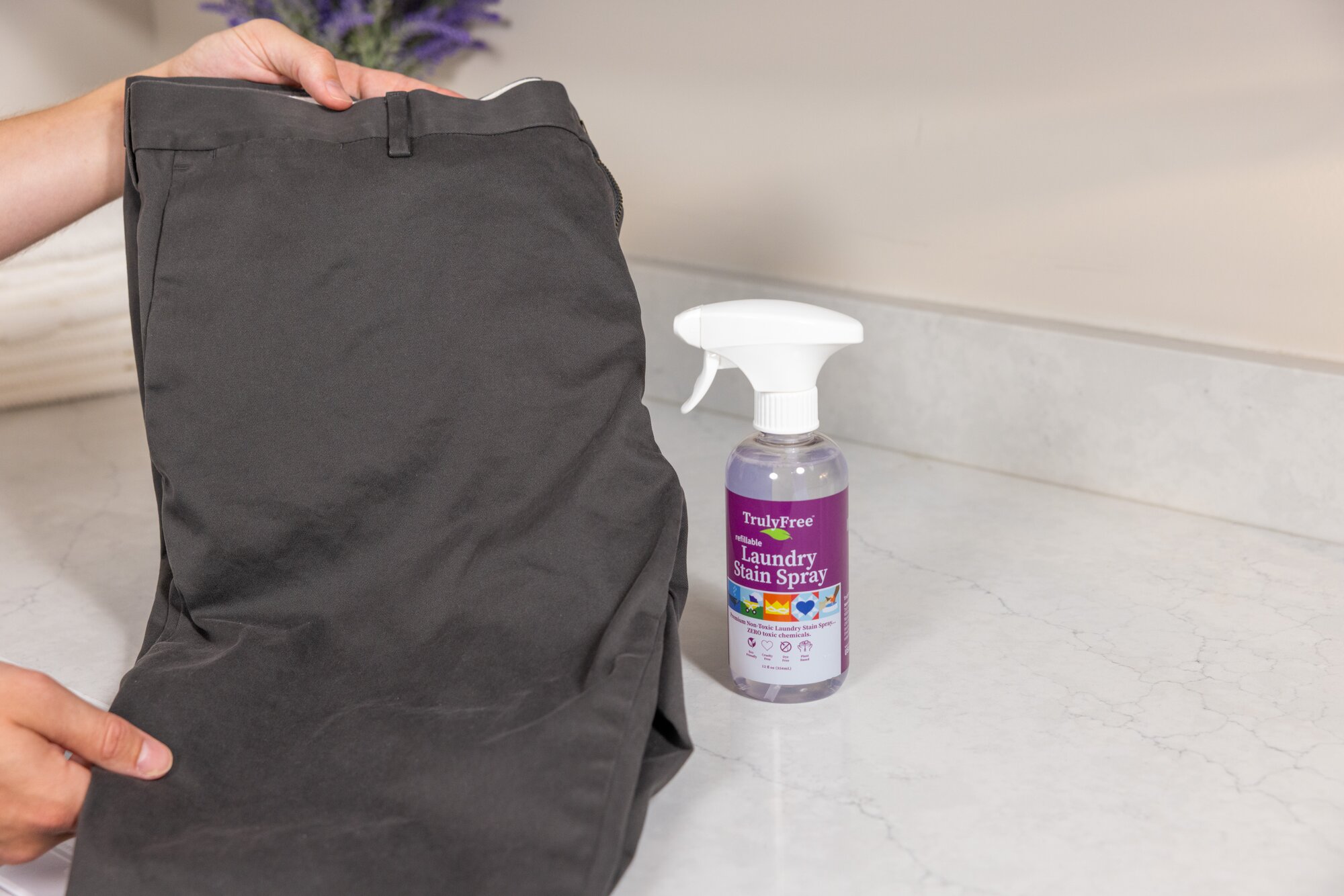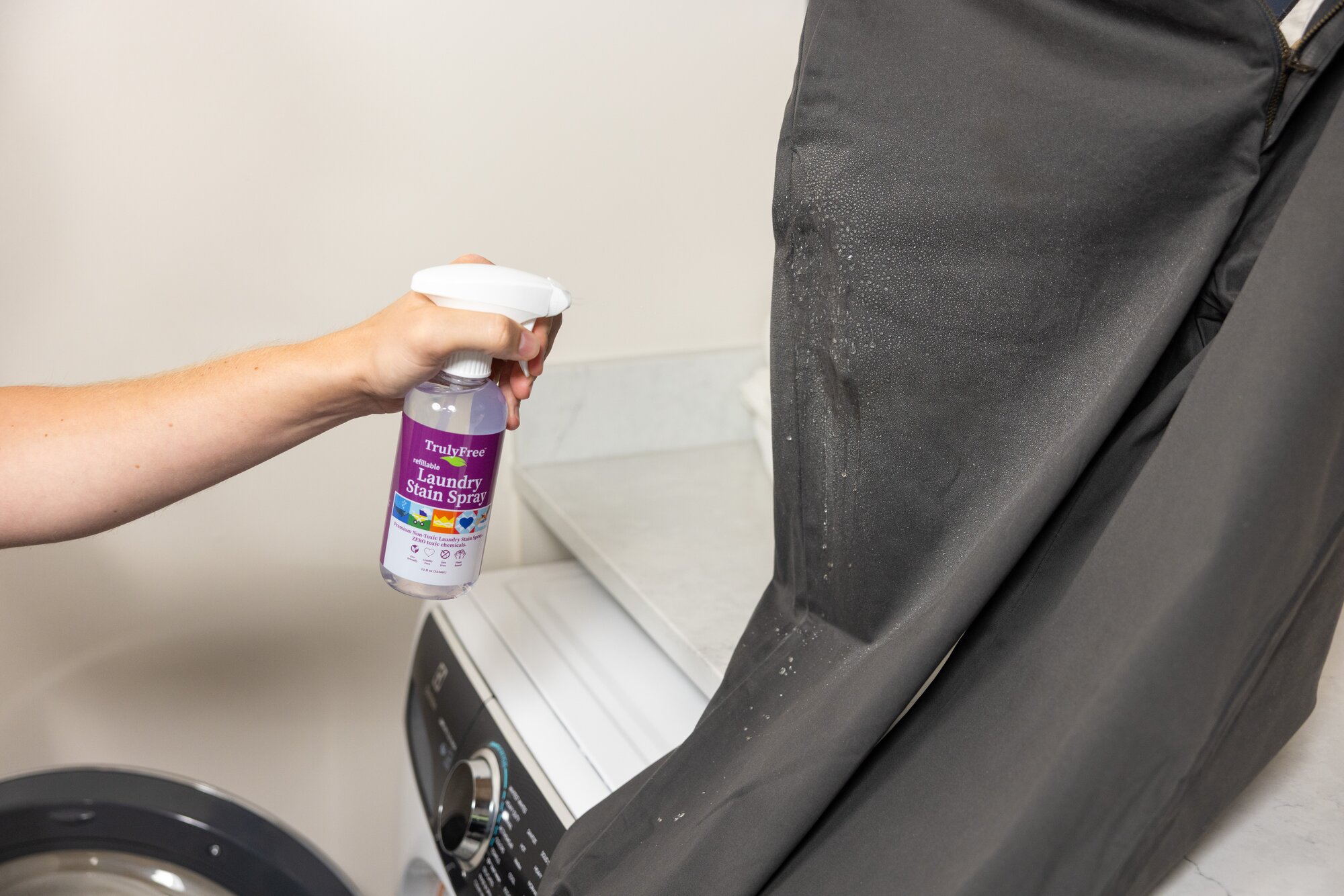 - Sprinkle Truly Free Home Enzyme Stain Remover directly into the washer drum before adding your clothes.