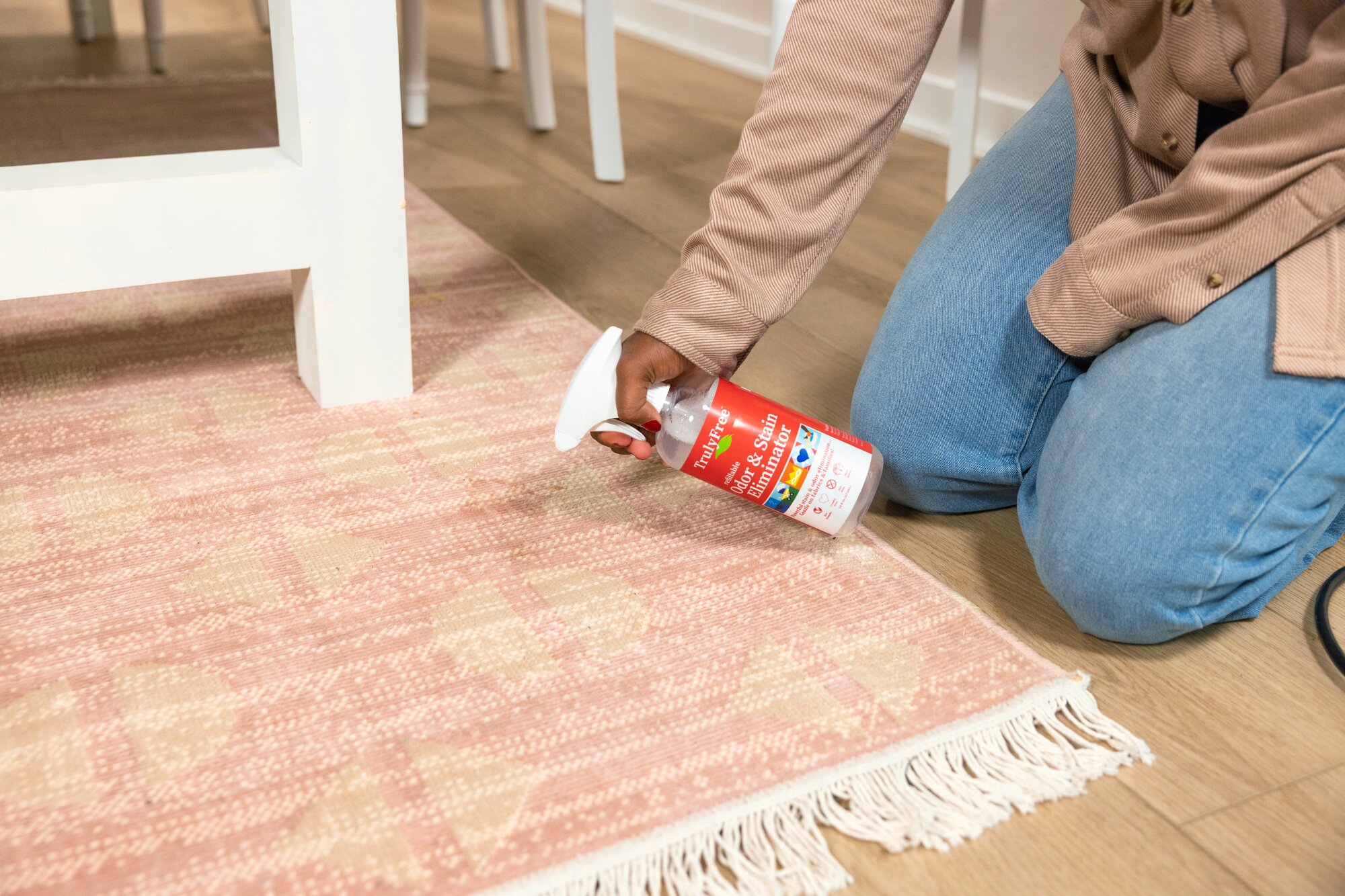 3. Spray the Stain - Spray the Truly Free Home Odor & Stain Eliminator generously onto the affected area until fully saturated.